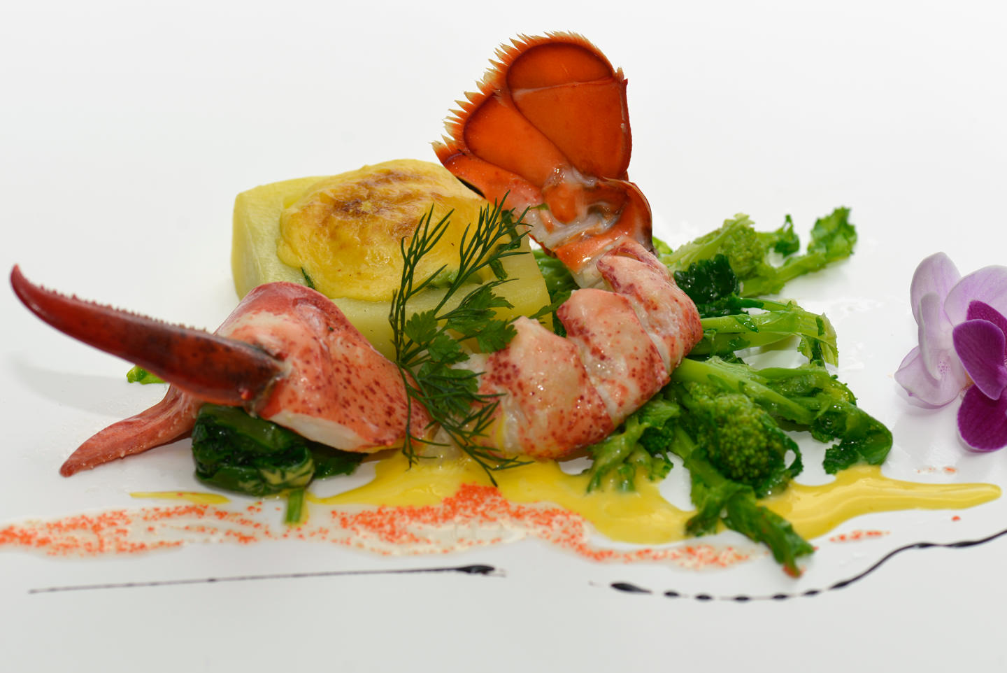 Homard grillé avec cubes de pommes de terre et sauce hollandaise