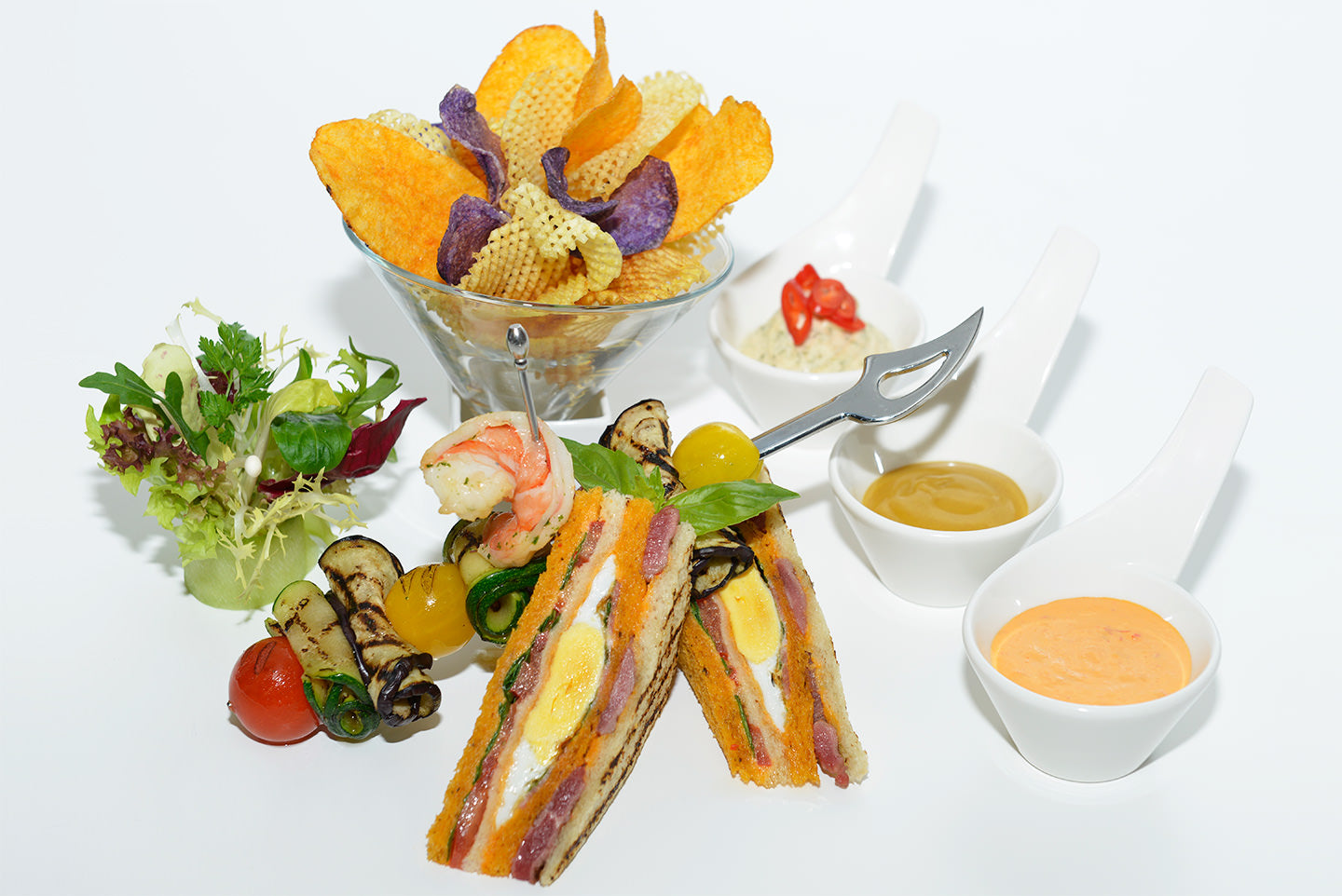 Empilez tous les ingrédients dans un club sandwich (voir image).