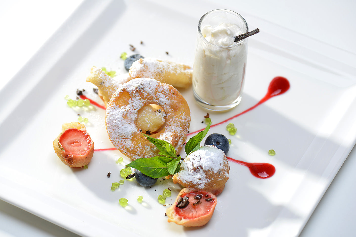 Gebackene Früchte mit Arabicakaffee und Vanille-Espuma