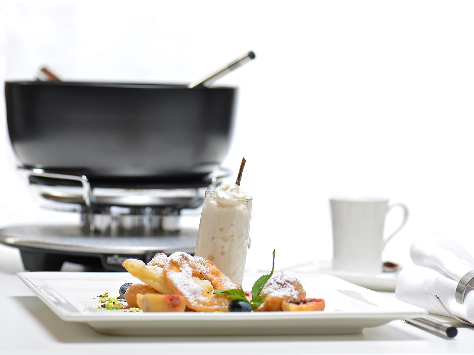 Die Kaffeebohnen im KOENIG Fondue Set all-in-one leicht rösten (nicht zu stark, sonst werden sie bitter), mit einem Mörser klein stossen, Mehl, Eigelb, Milch, Rum, Kaffeebohnen, Vanillemark und Espresso Öl zu einem Teig verrühren, Eiweiss mit einer Prise Salz steif schlagen und kurz vor Beginn des Backfondues unter den Teig heben.