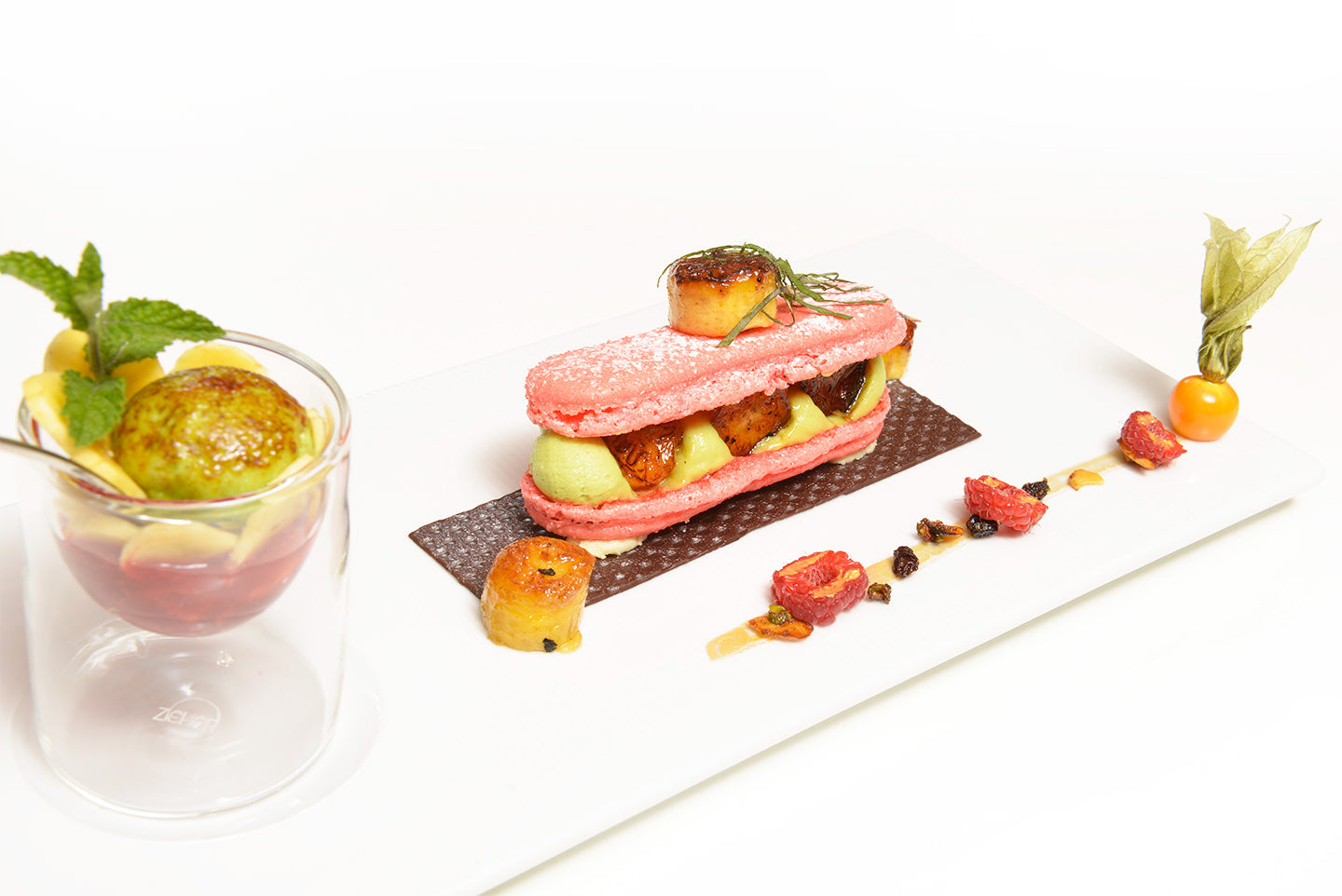 Vanille-Pistazien-Schaumcreme mit Himbeer-Makronen