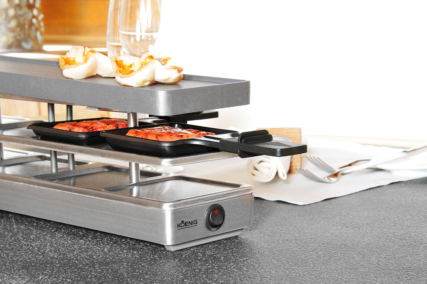 Die Wassermelone in 4 Scheiben 8 x 16 cm schneiden, auf dem Tischgrill grillieren und warm stellen.