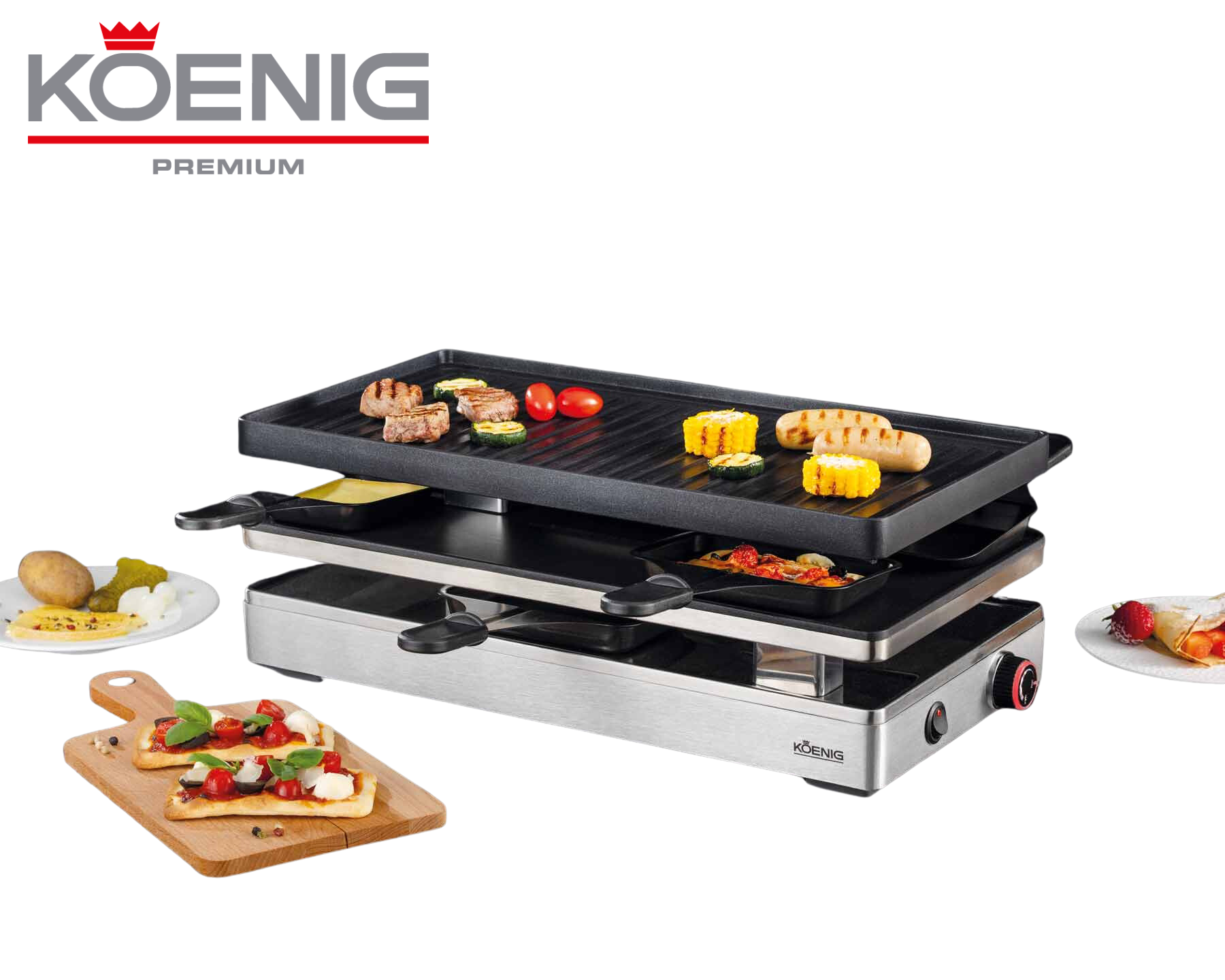 Entdecke den ultimativen Genuss mit dem 4-in-1 Pizza-/Raclette-Grill von KOENIG!